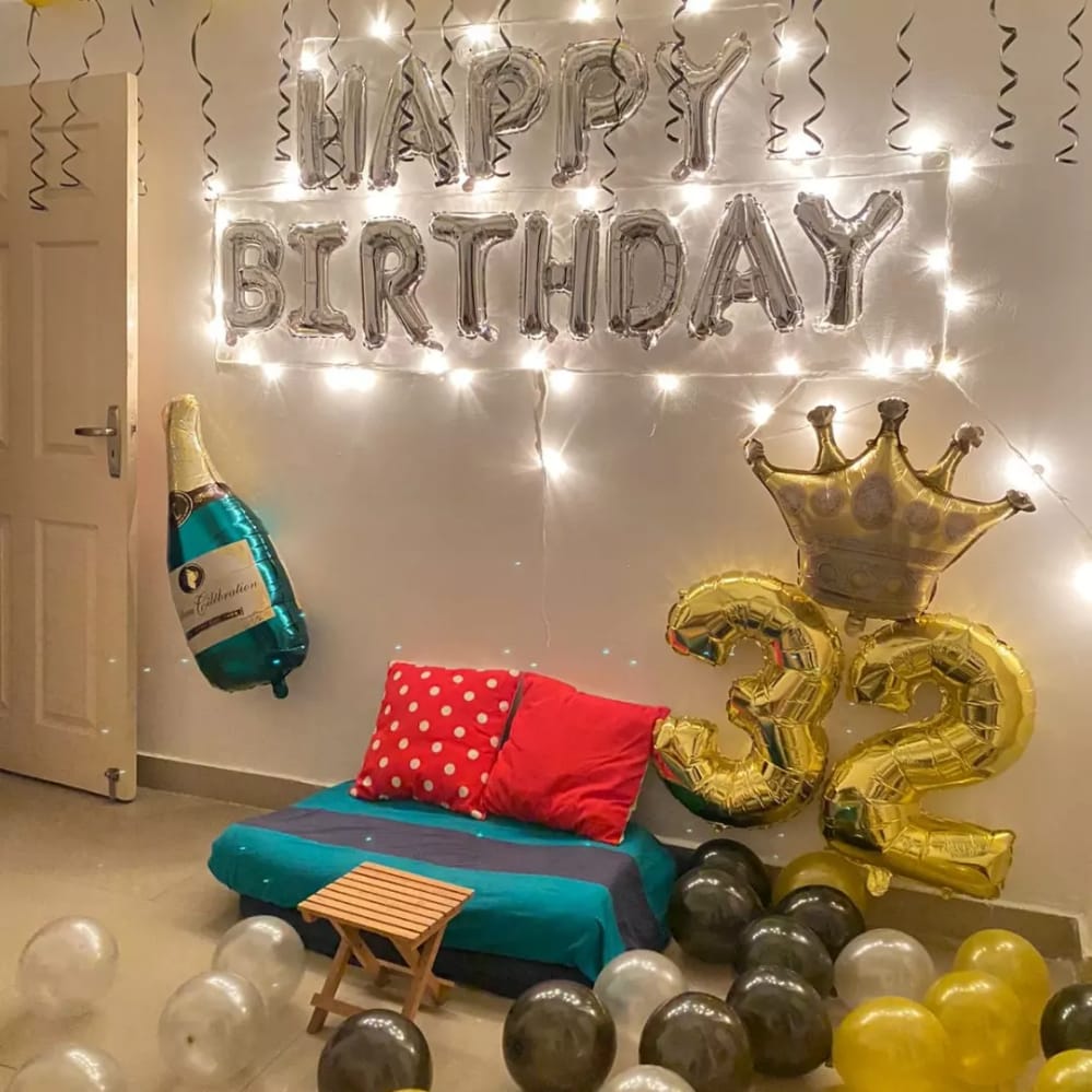 Every Birthday Party is special that's why we bring this special Birthday Room Decoration in which the room is decorated with Foil Backdrop Curtains for the Birthday Celebration house party.